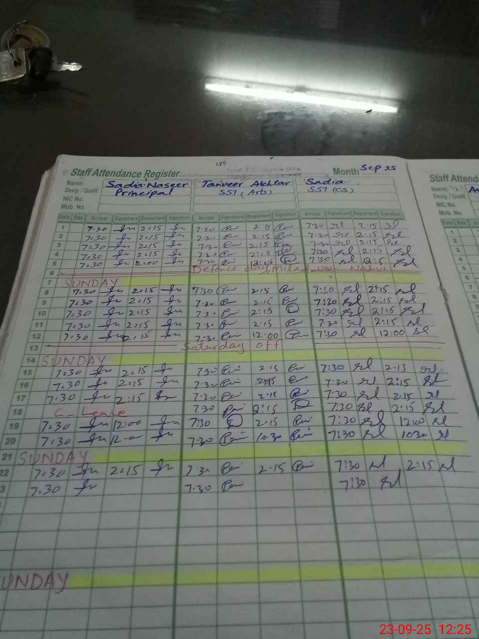 | CNIC | Full Name | Designation | R/C | Absence During Last Calender Month |