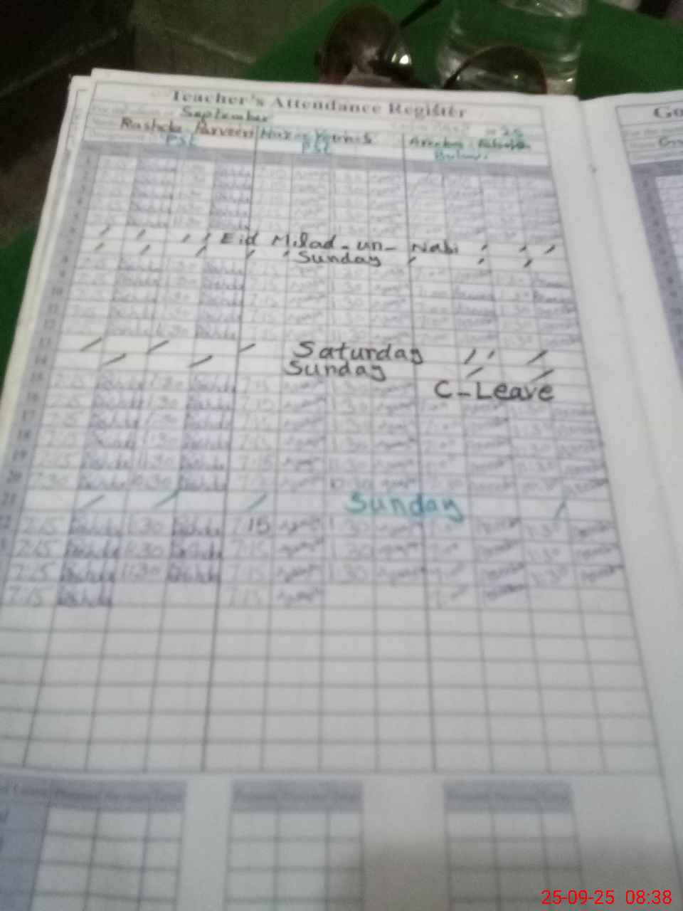 | CNIC | Full Name | Designation | R/C | Absence During Last Calender Month |