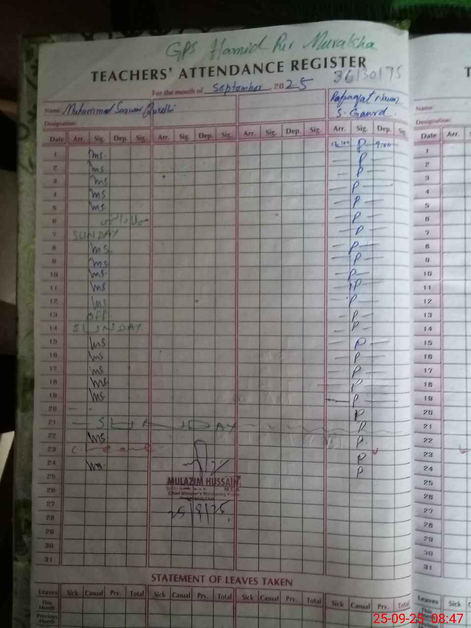 | Mu**** | PSSP | Temporary | 0 | 0 | 0 | 0 | 0 | 0 | 0 | 0 | 0 | Absent (Un-Authorized) | |