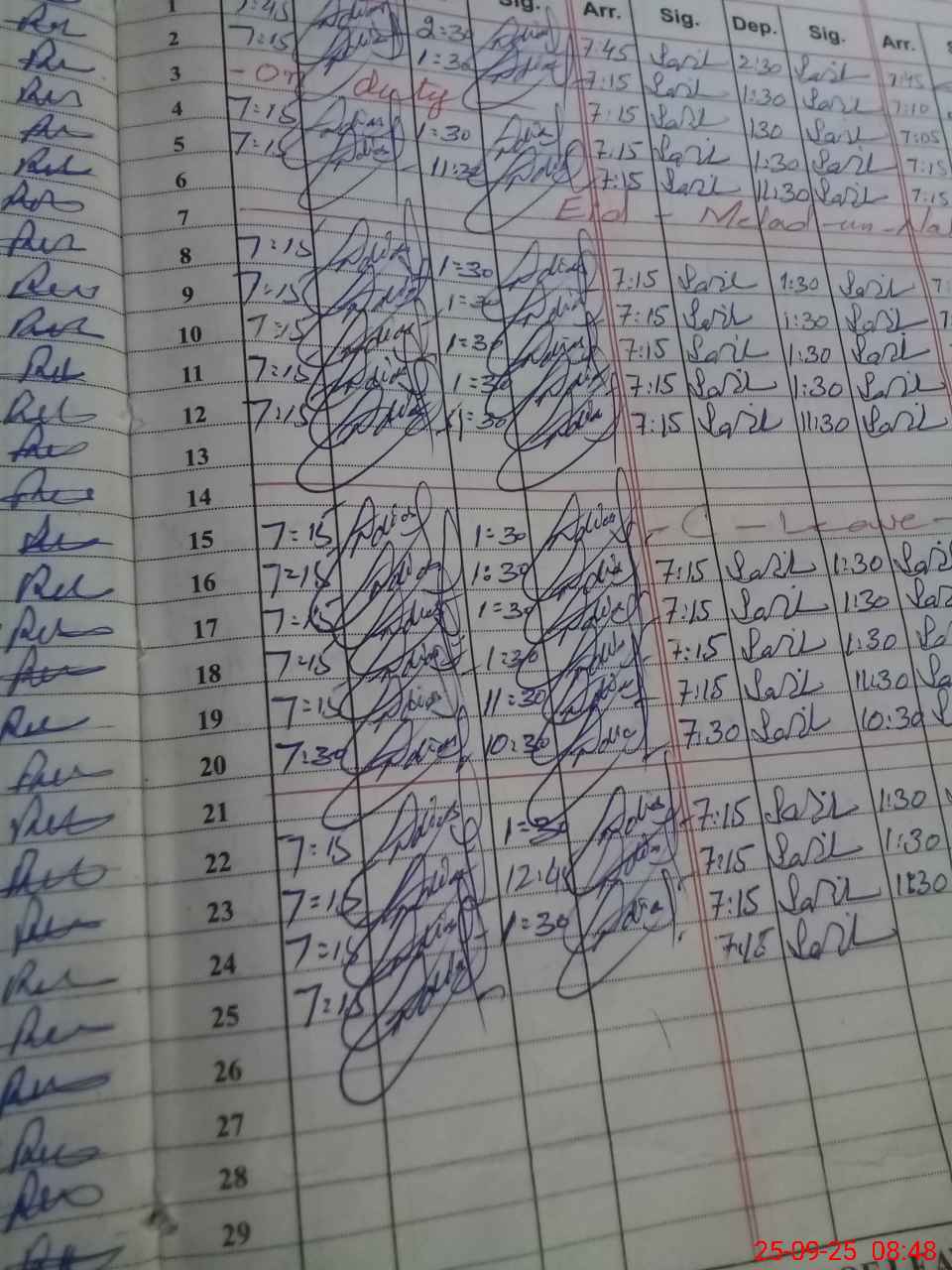 | CNIC | Full Name | Designation | R/C | Absence During Last Calender Month |