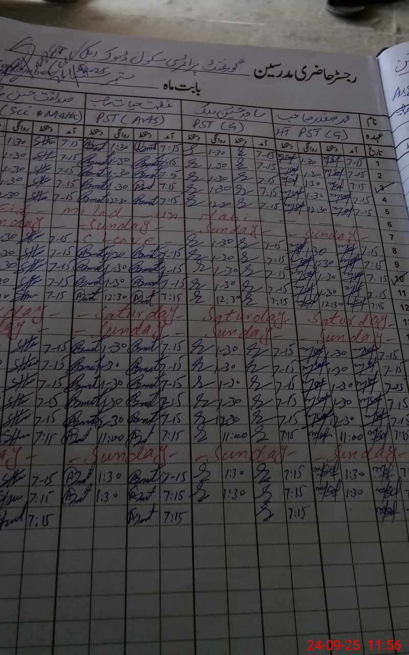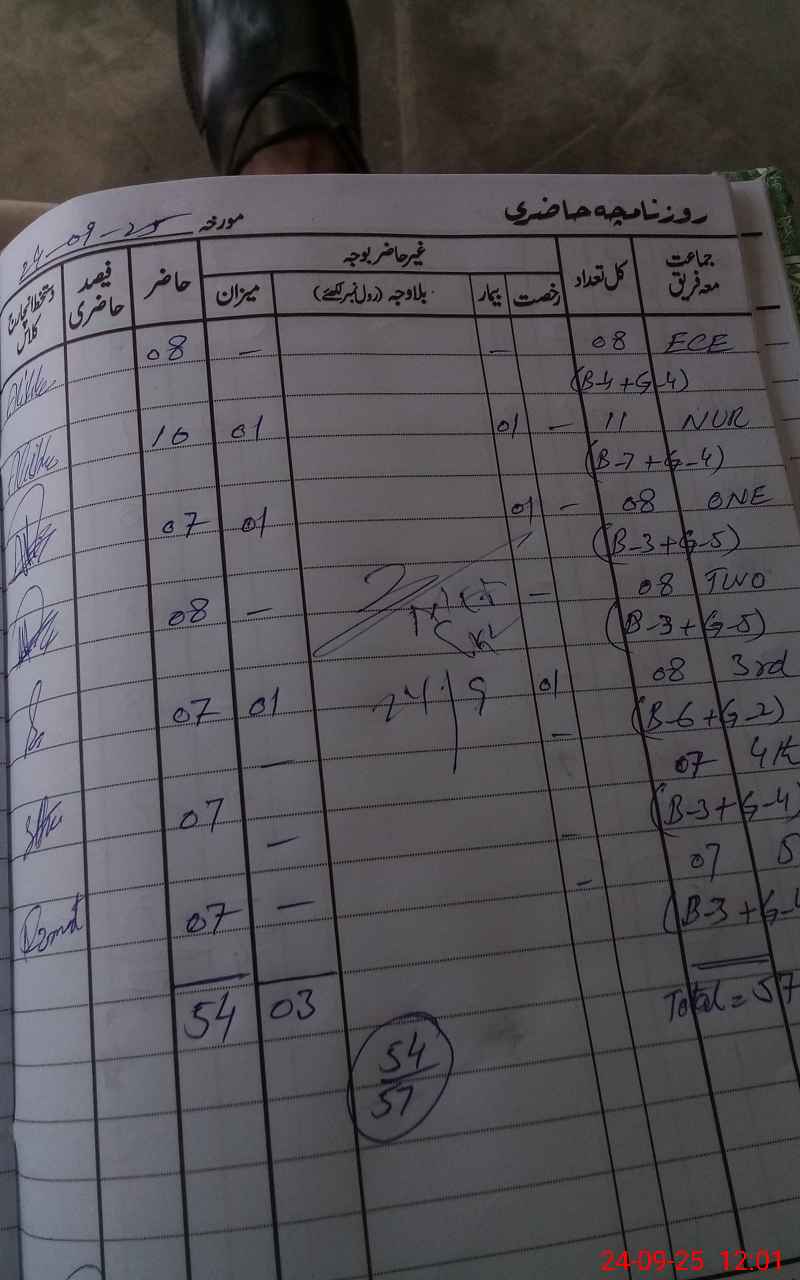 | CNIC | Full Name | Designation | R/C | Absence During Last Calender Month |