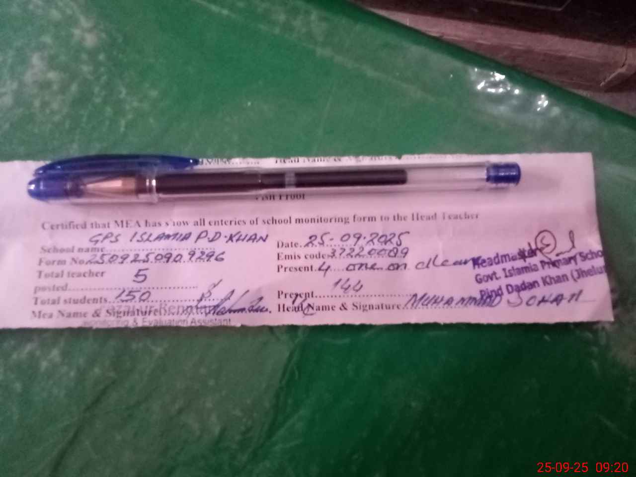 | Attendance Register | Head Teacher | MEA with School | Visit Proof |
