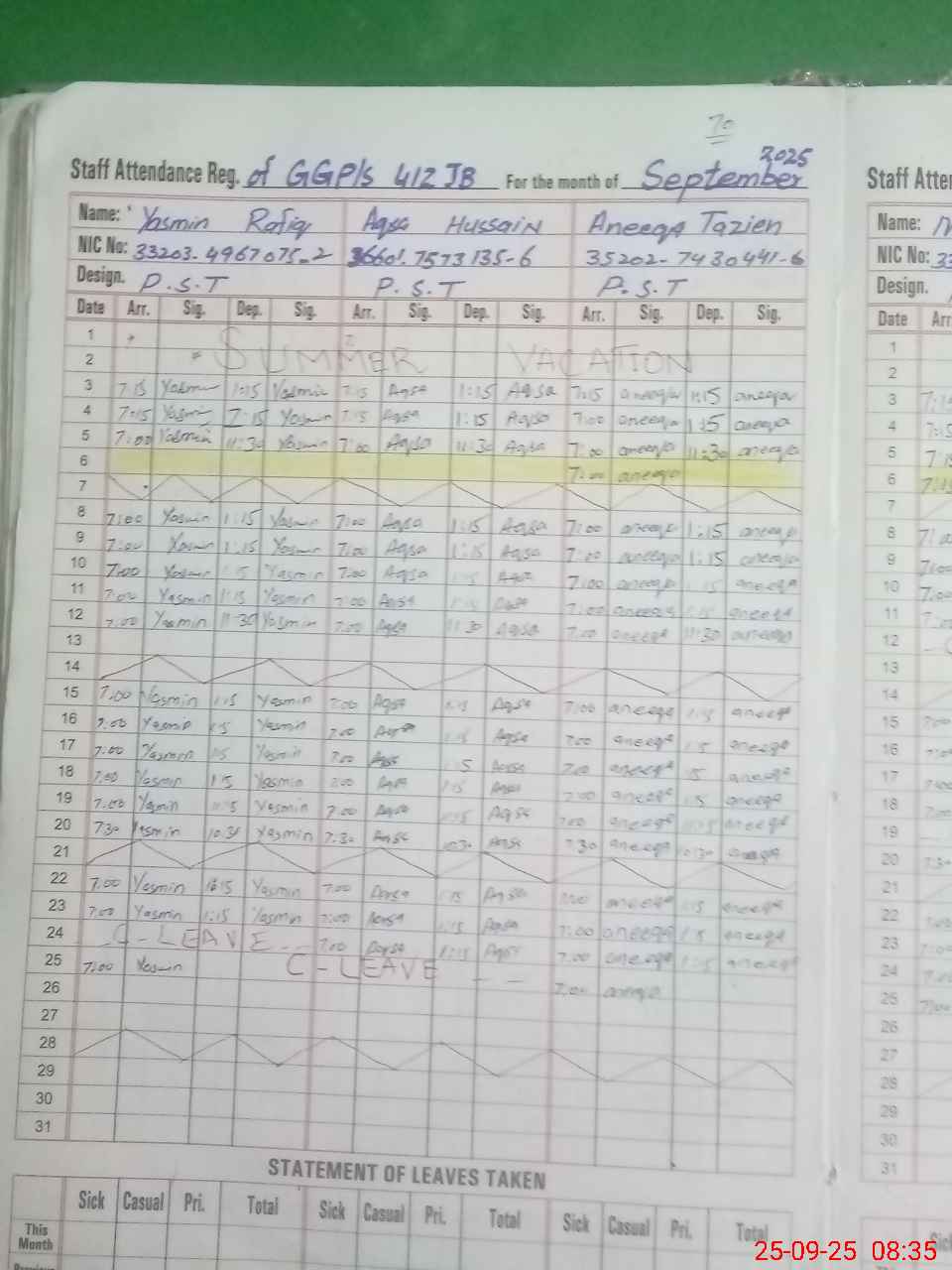 | 36**** | Aq**** Hu**** | PST | Regular | 0 | 0 | 0 | 0 | 0 | 0 | 0 | 0 | 0 | Casual |