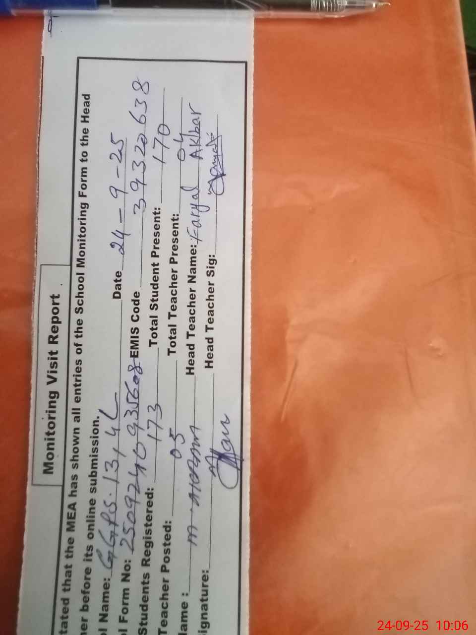 | Certified that this School was Inspected by the Undersigned MEA/DMO Today and the Information Stated Above is as Per Record. | |||||