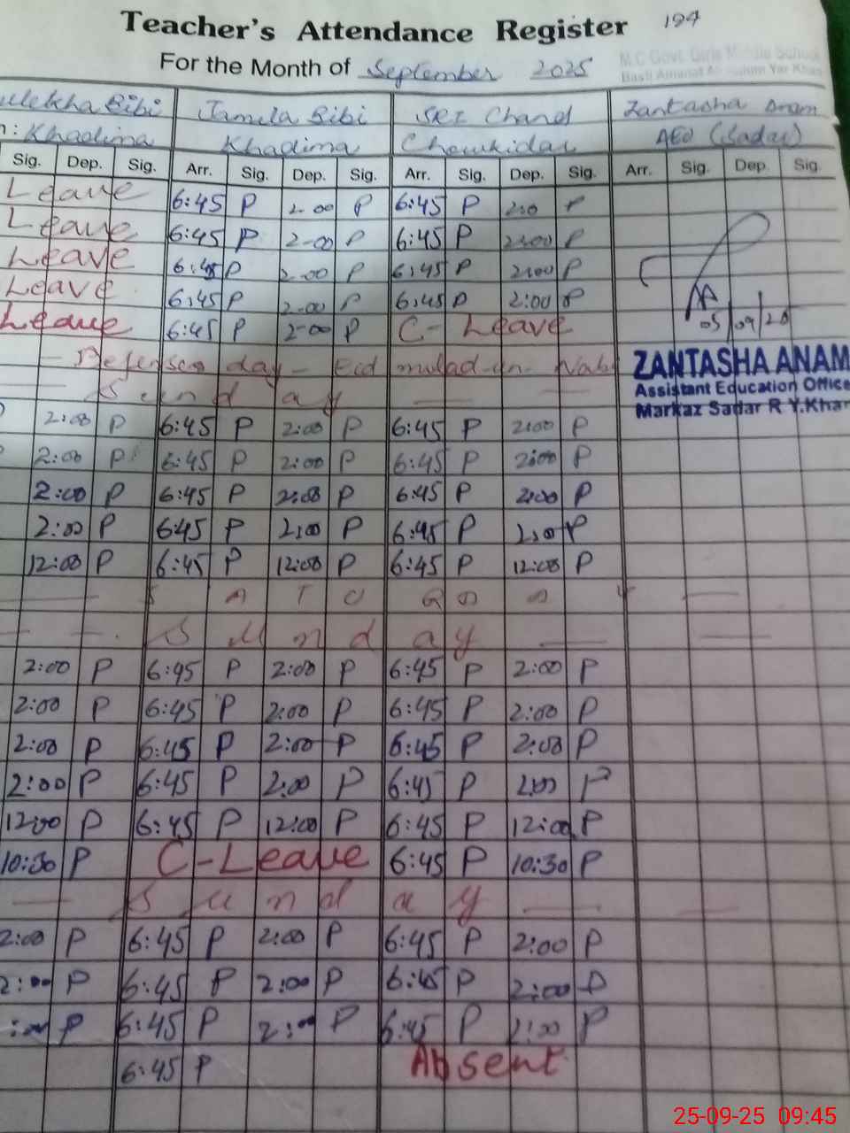 | 31**** | Sr**** Ch**** | CHOKIDAAR | Regular | 0 | 0 | 0 | 0 | 0 | 0 | 0 | 0 | 0 | Absent (Un-Authorized) |