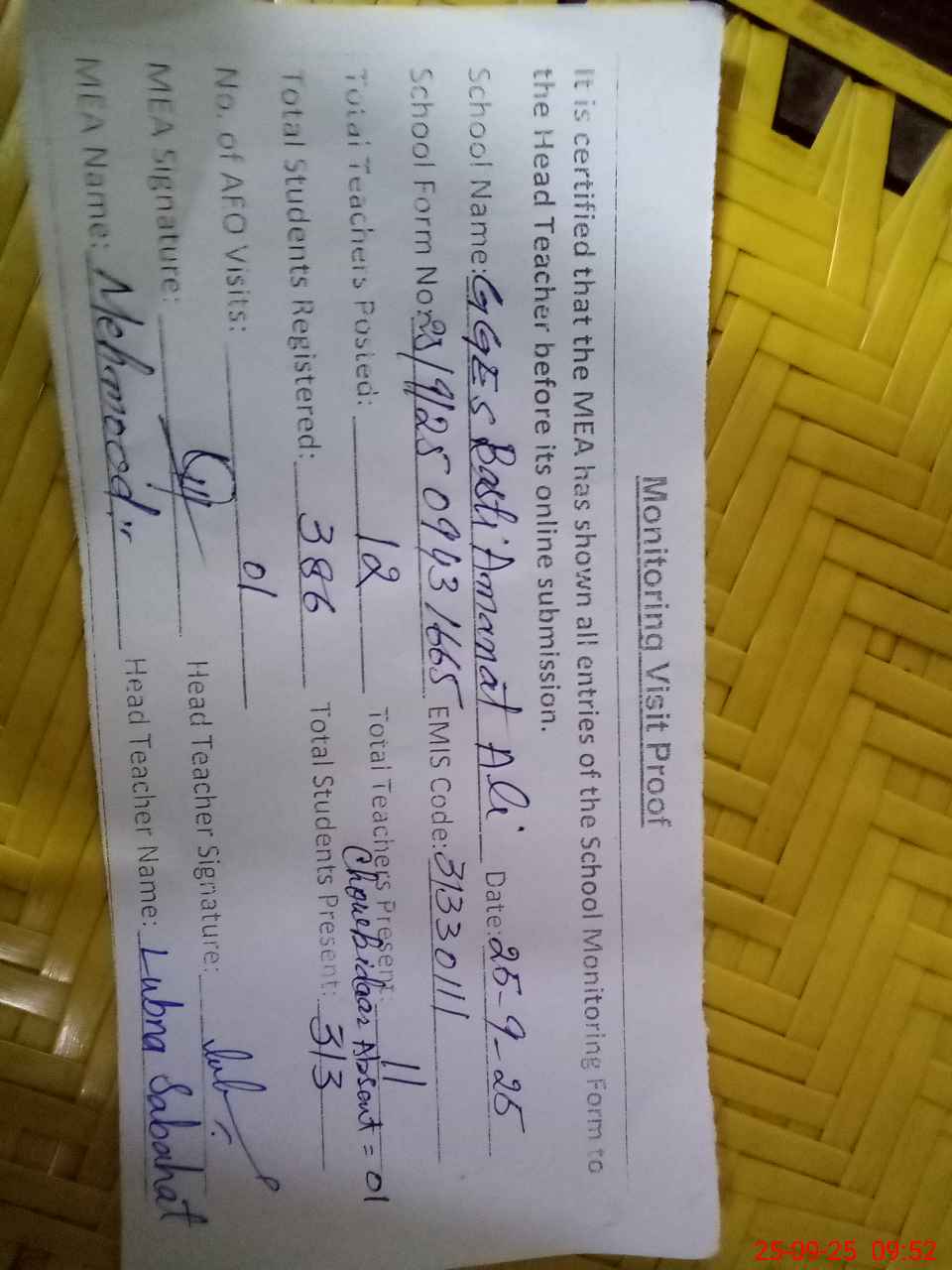 | EMIS Code: 31330111 | Name of School: GGES BASTI AMANAT ALI | |||
