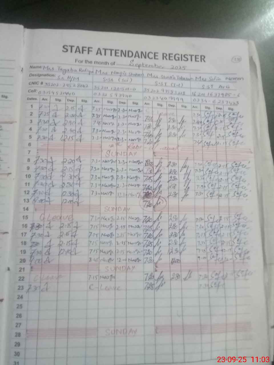 | Name: Ta**** Ra**** Designation: (School Headmaster's/Headmistress's) Senior Head Mistress Phone/Cell Number: 03**** |