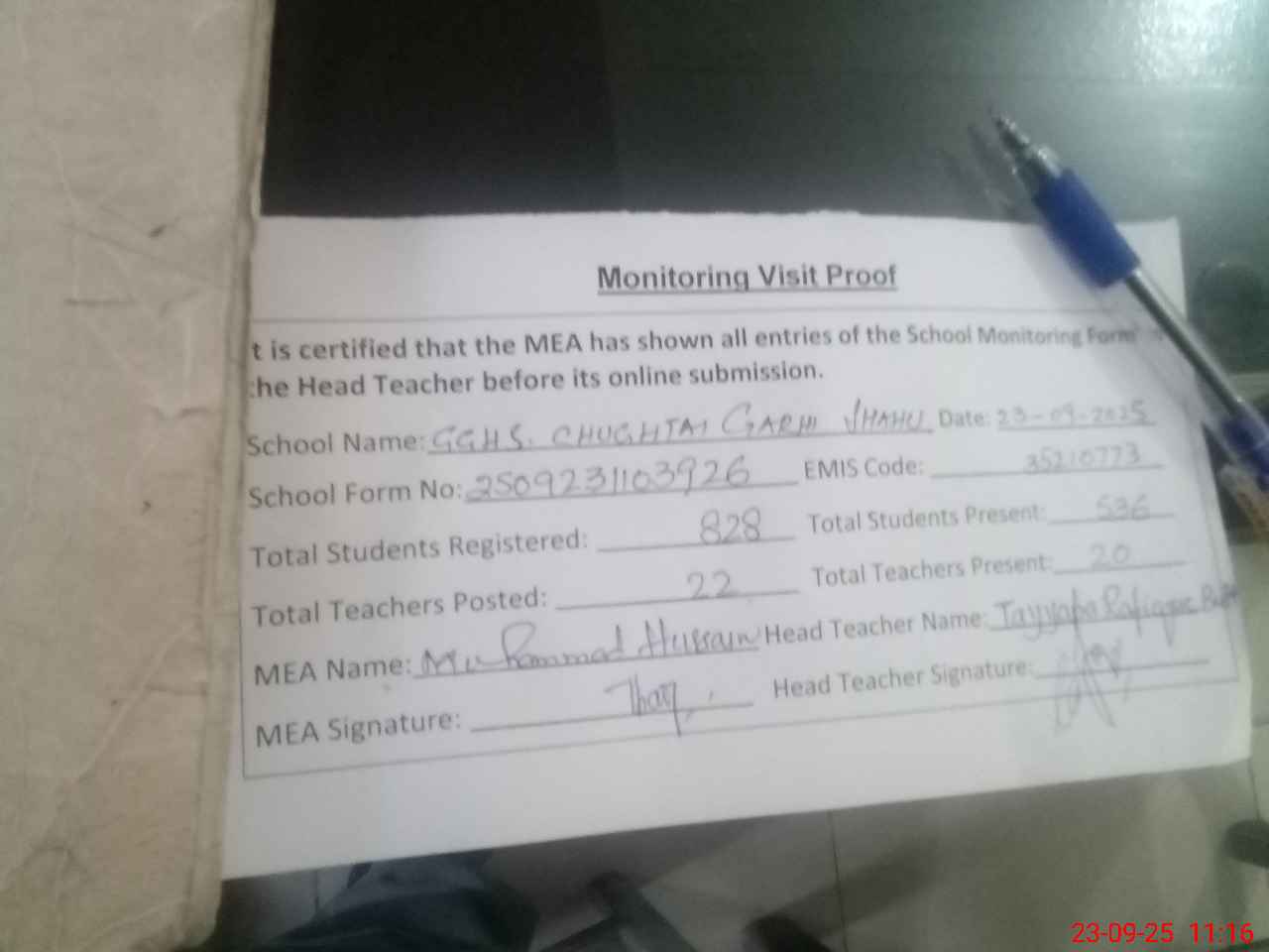| EMIS Code: 35210773 | Name of School: GGHS CHUGHTAI GARHI SHAHU | |||