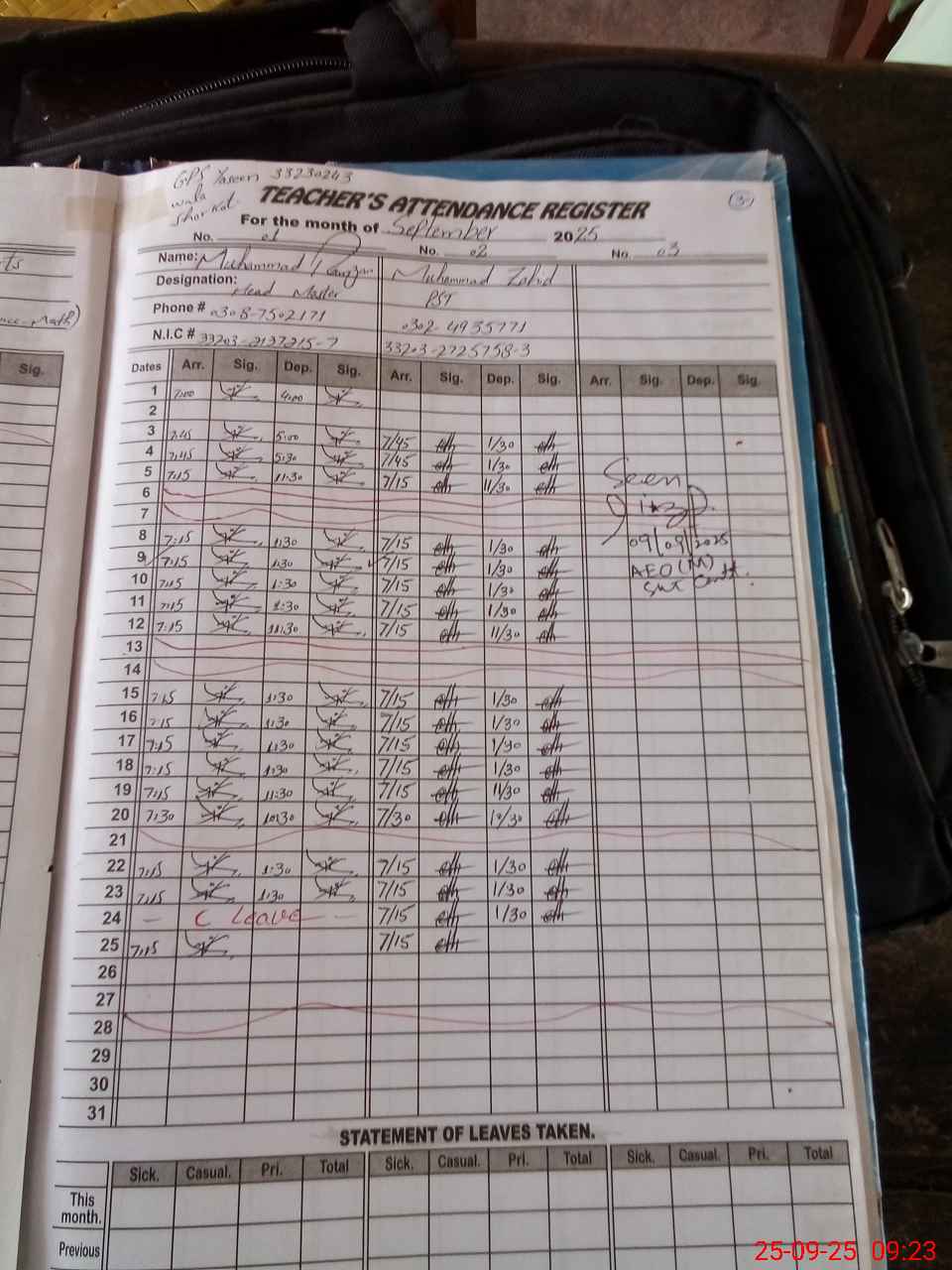 | Name: MU**** RA**** Designation: (School Headmaster's/Headmistress's) PST Phone/Cell Number: 03**** |