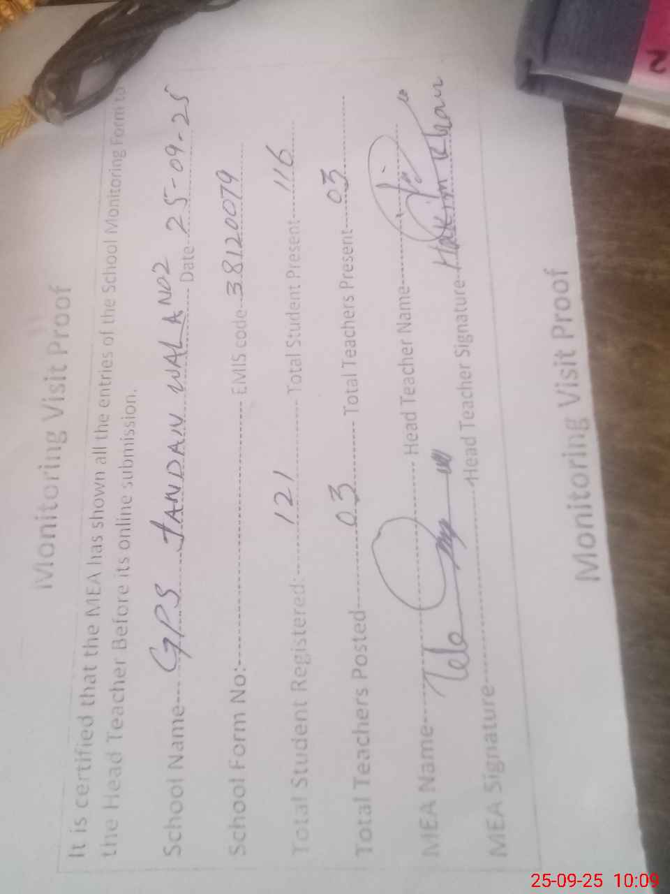 | EMIS Code: 38120079 | Name of School: GPS JANDAN WALA NO.2 | |||
