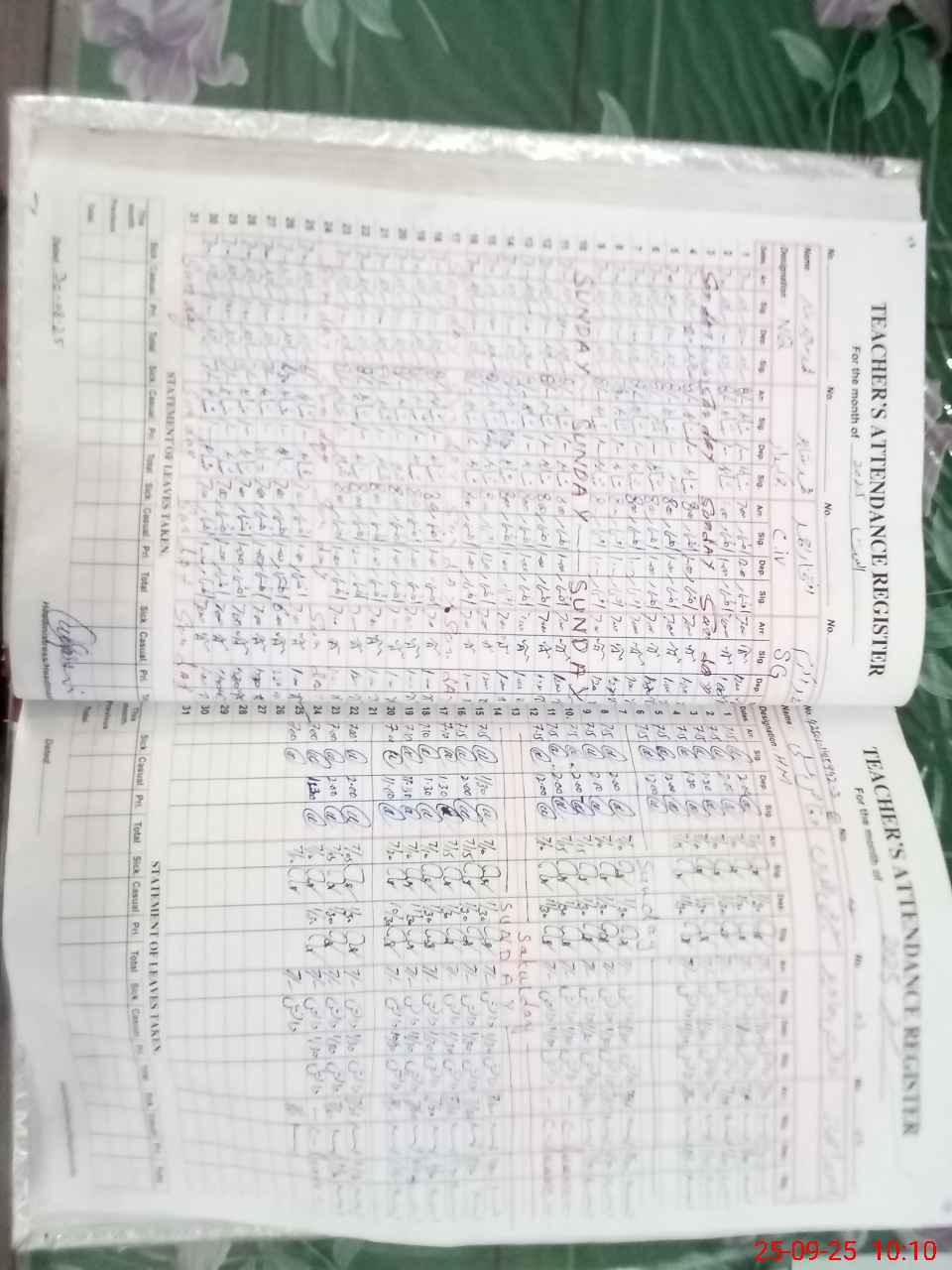 | CNIC | Full Name | Designation | R/C | Absence During Last Calender Month |