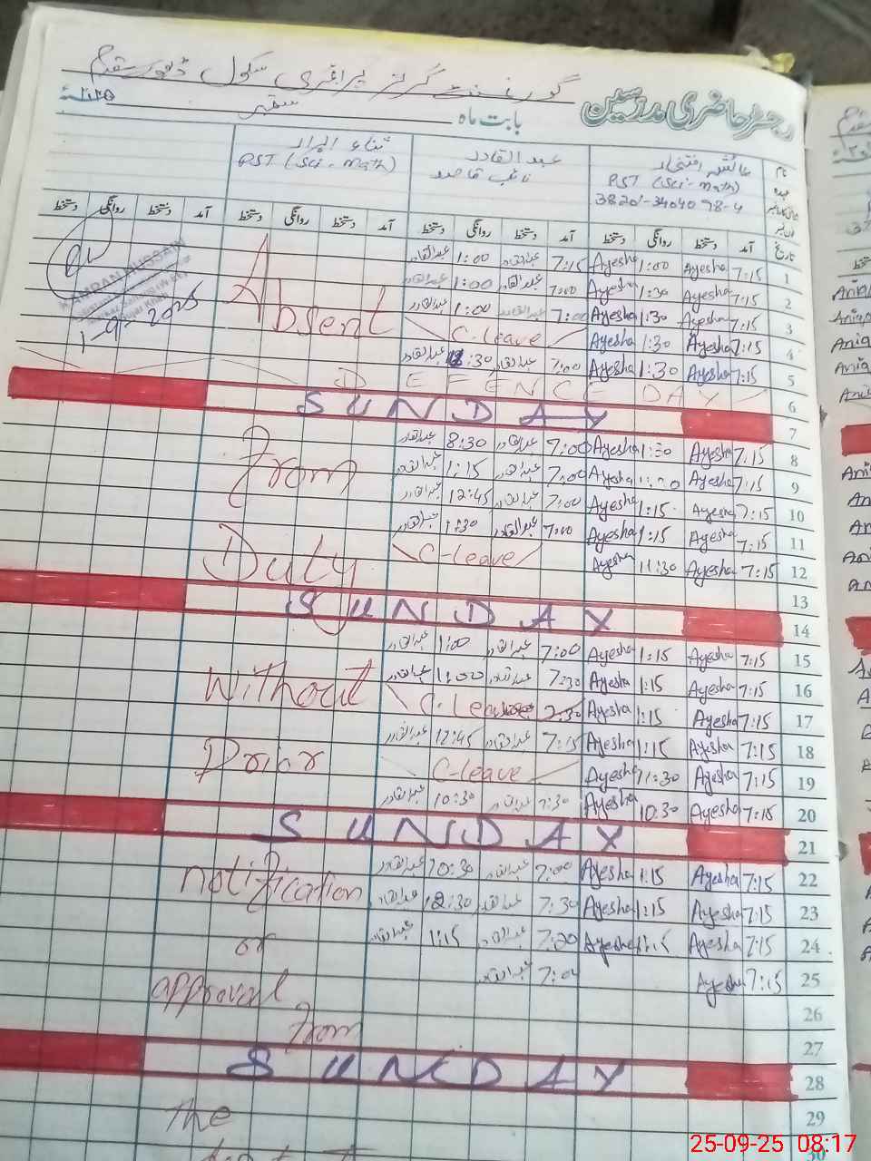 | 37**** | Sa**** Ab**** | 1 | 1 | 0 | 0 | 0 | 0 | 0 | 0 | 0 | 0 | 0 | Absent (Un-Authorized) |