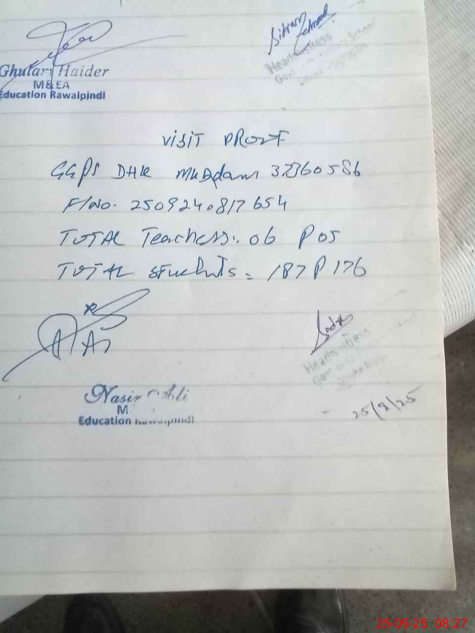 | Name: Si**** Me**** Designation: (School Headmaster's/Headmistress's) PST Phone/Cell Number: 03**** |