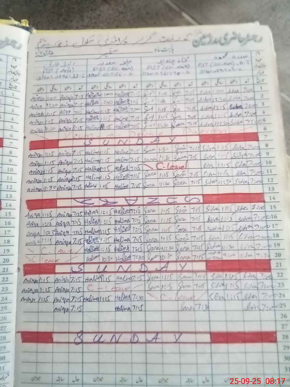 | CNIC | Full Name | Designation | R/C | Absence During Last Calender Month |