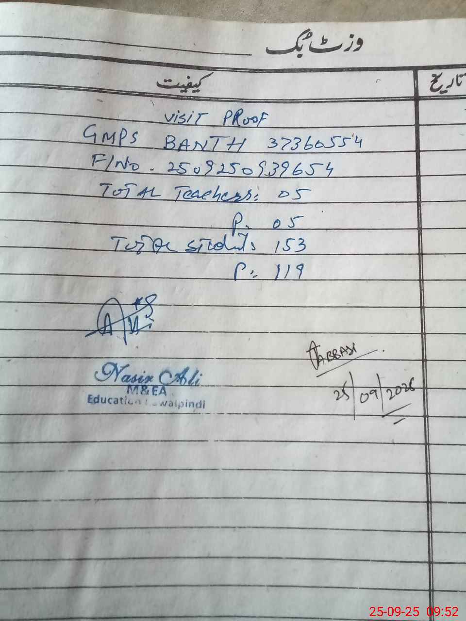 | EMIS Code: 37360554 | Name of School: GMPS BANTH | |||