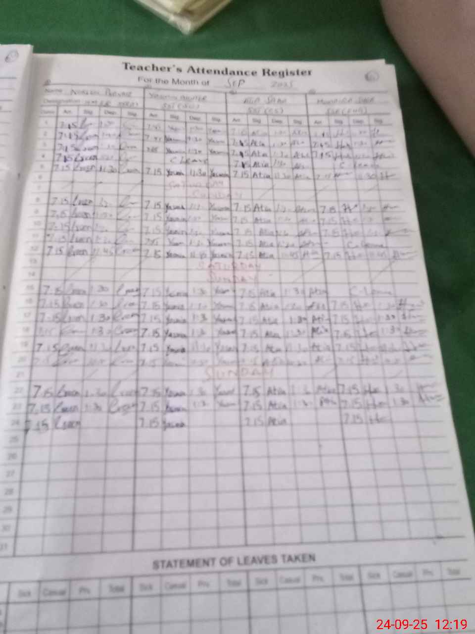 | Leave | Duty | Absent | Maternity | Medical | Ex- Pak |