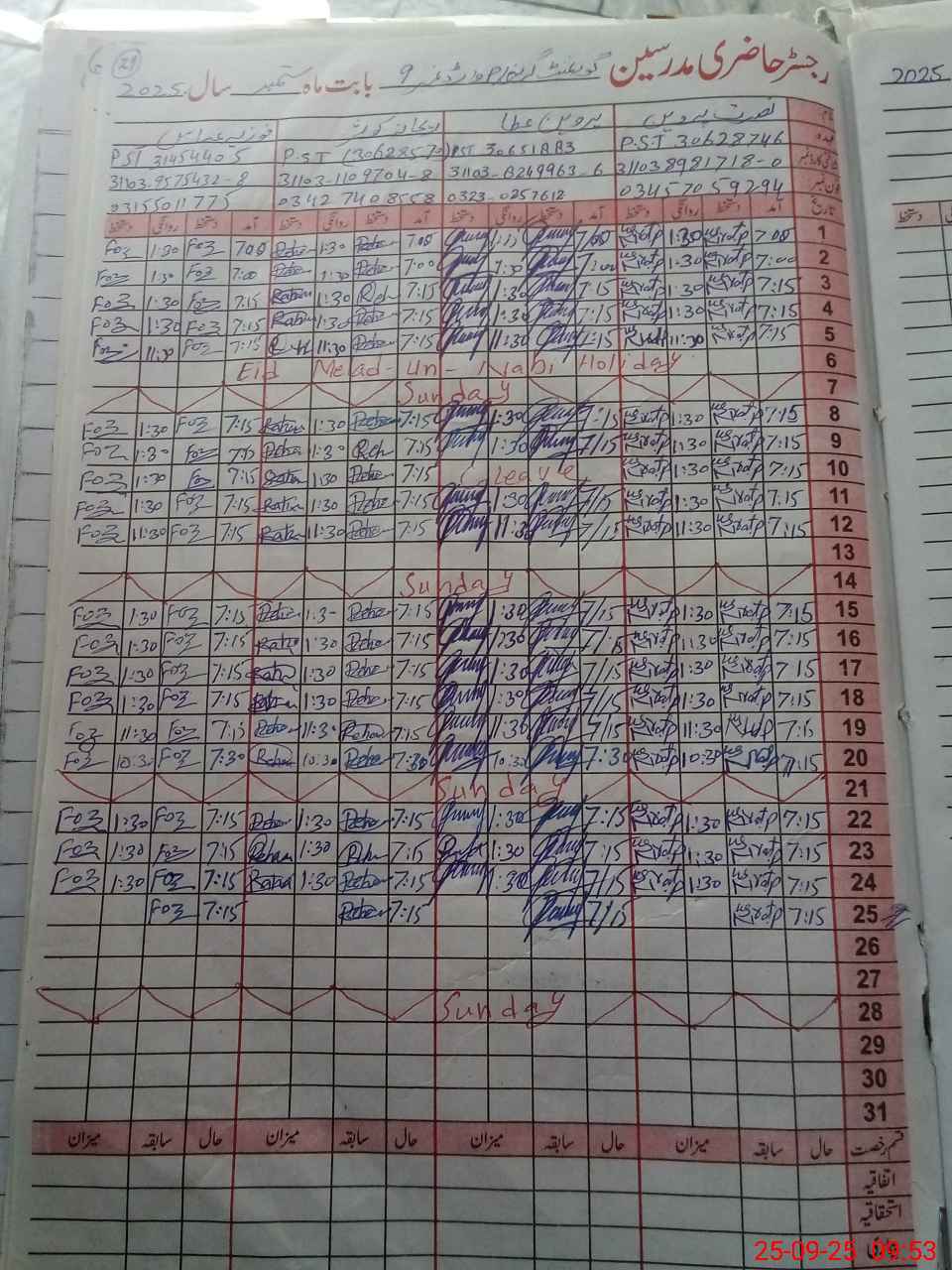 | CNIC | Full Name | Designation | R/C | Absence During Last Calender Month |