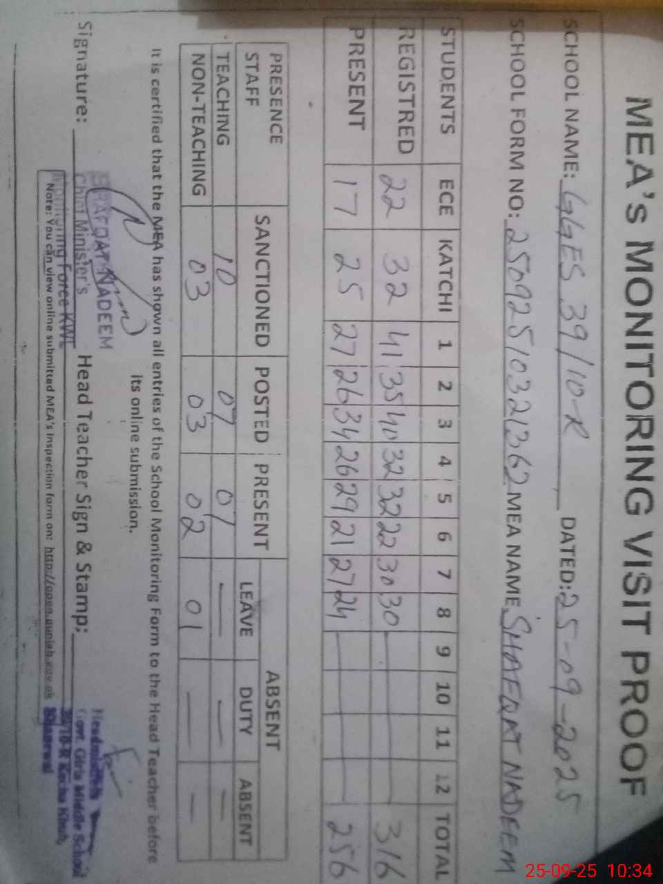 | EMIS Code: 36420116 | Name of School: GGES 39/10-R, KACHA KHUH | |||