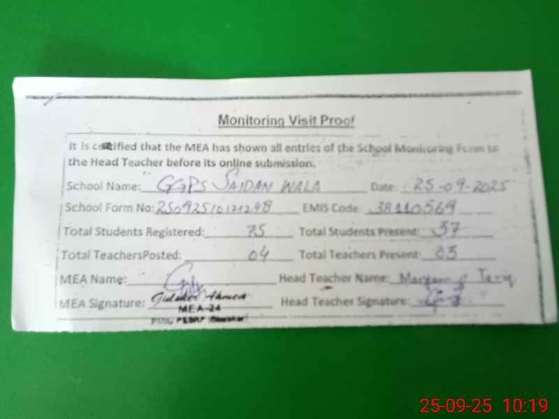 | EMIS Code: 38110569 | Name of School: GGPS SAIDAN WALA | |||