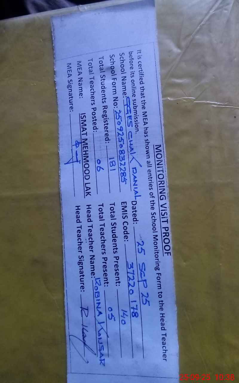 | EMIS Code: 37220178 | Name of School: GGES CHAK DINAL | |||