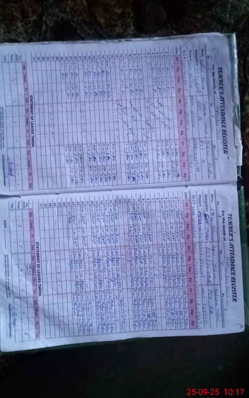 | Name: SH**** AK**** Designation: (School Headmaster's/Headmistress's) H M Phone/Cell Number: 03**** |