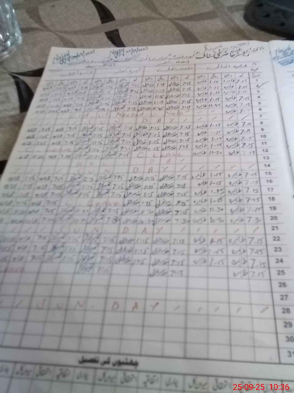 | CNIC | Full Name | Designation | R/C | Absence During Last Calender Month |