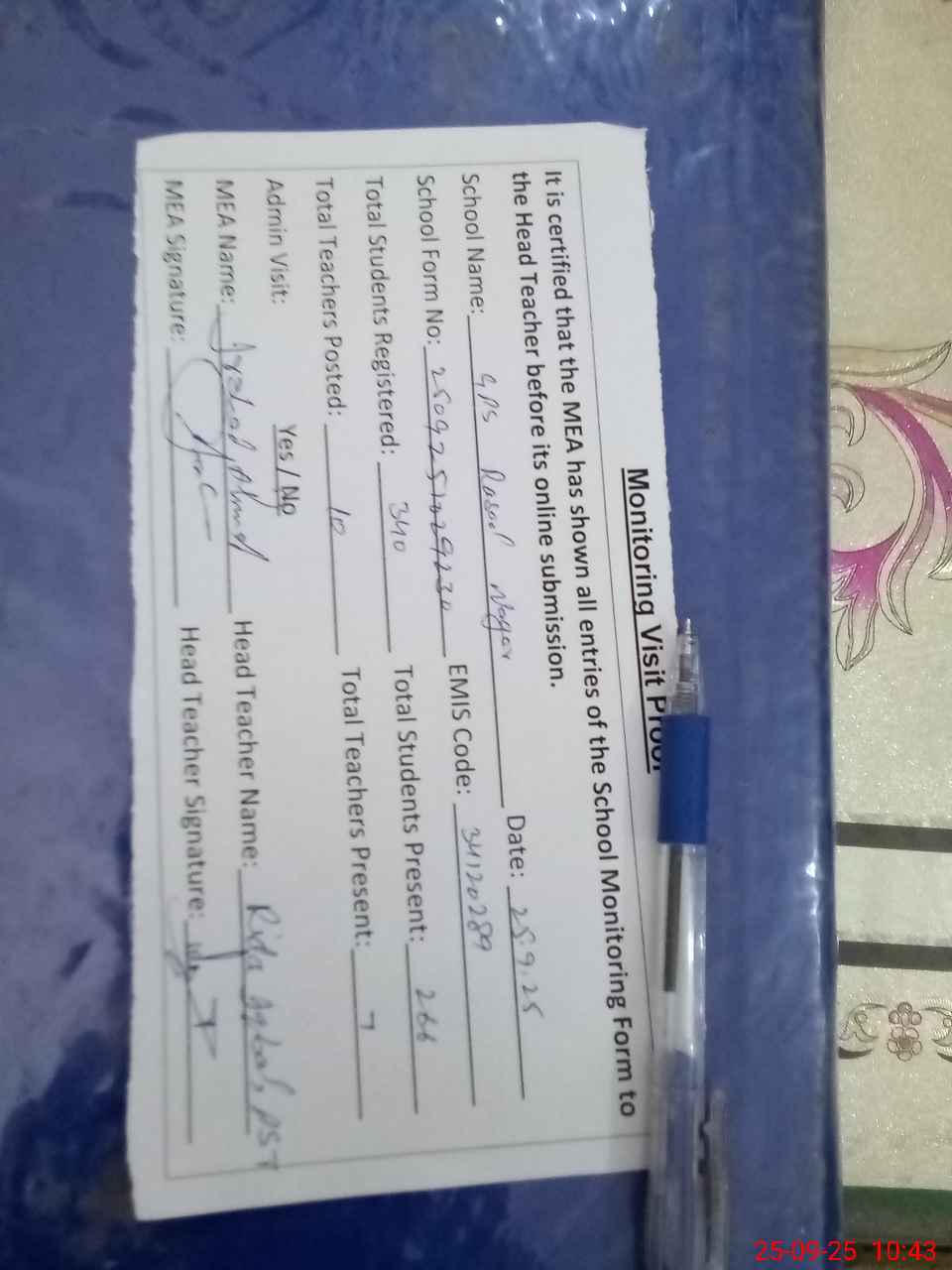 | EMIS Code: 34120289 | Name of School: GPS RASOOL NAGAR | |||