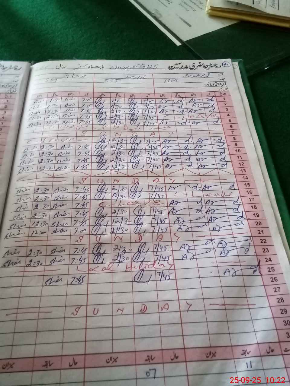 | Leave | Duty | Absent | Maternity | Medical | Ex- Pak |