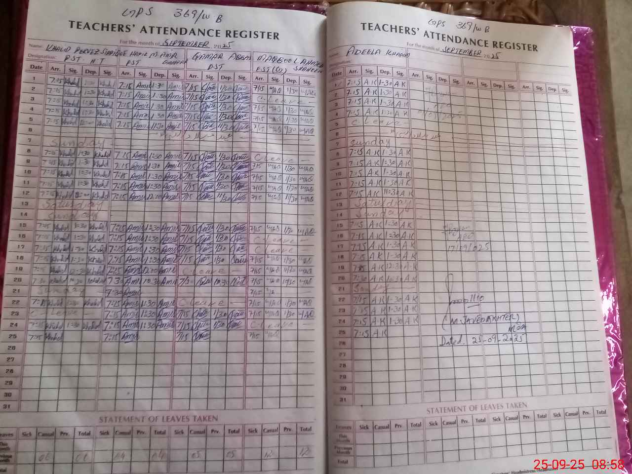 | Name: Kh**** Pe**** Designation: (School Headmaster's/Headmistress's) PTC/JV Phone/Cell Number: 03**** |