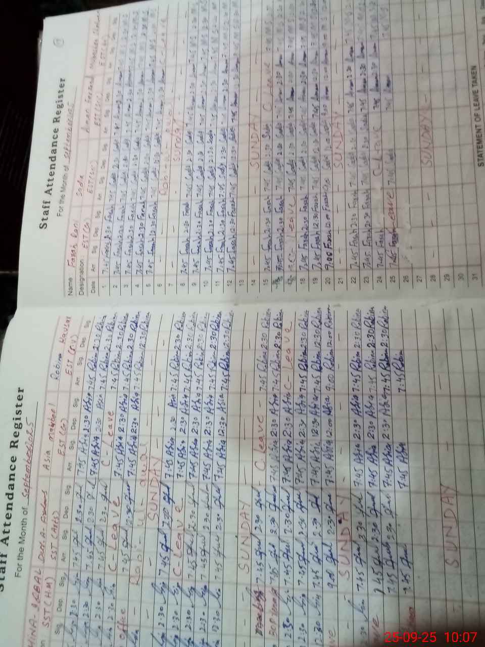 | CNIC | Full Name | Designation | R/C | Absence During Last Calender Month |