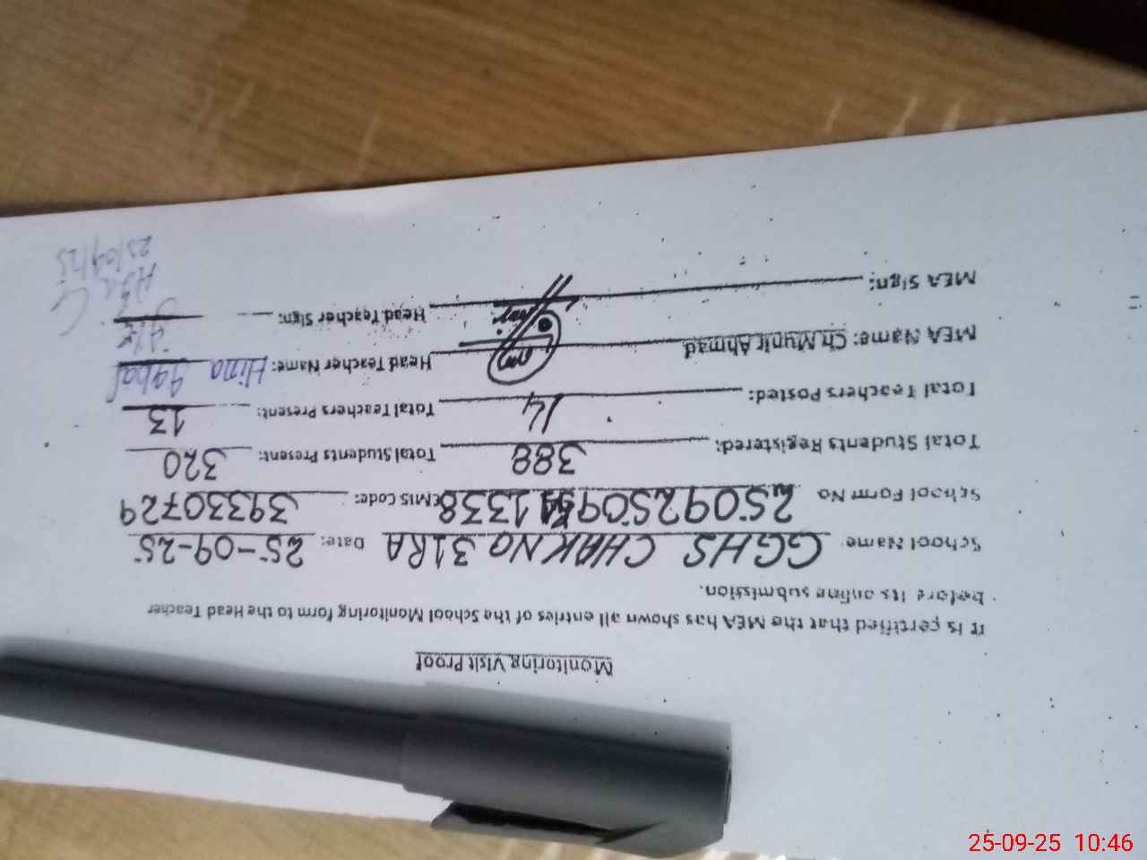 | Certified that this School was Inspected by the Undersigned MEA/DMO Today and the Information Stated Above is as Per Record. | |||||