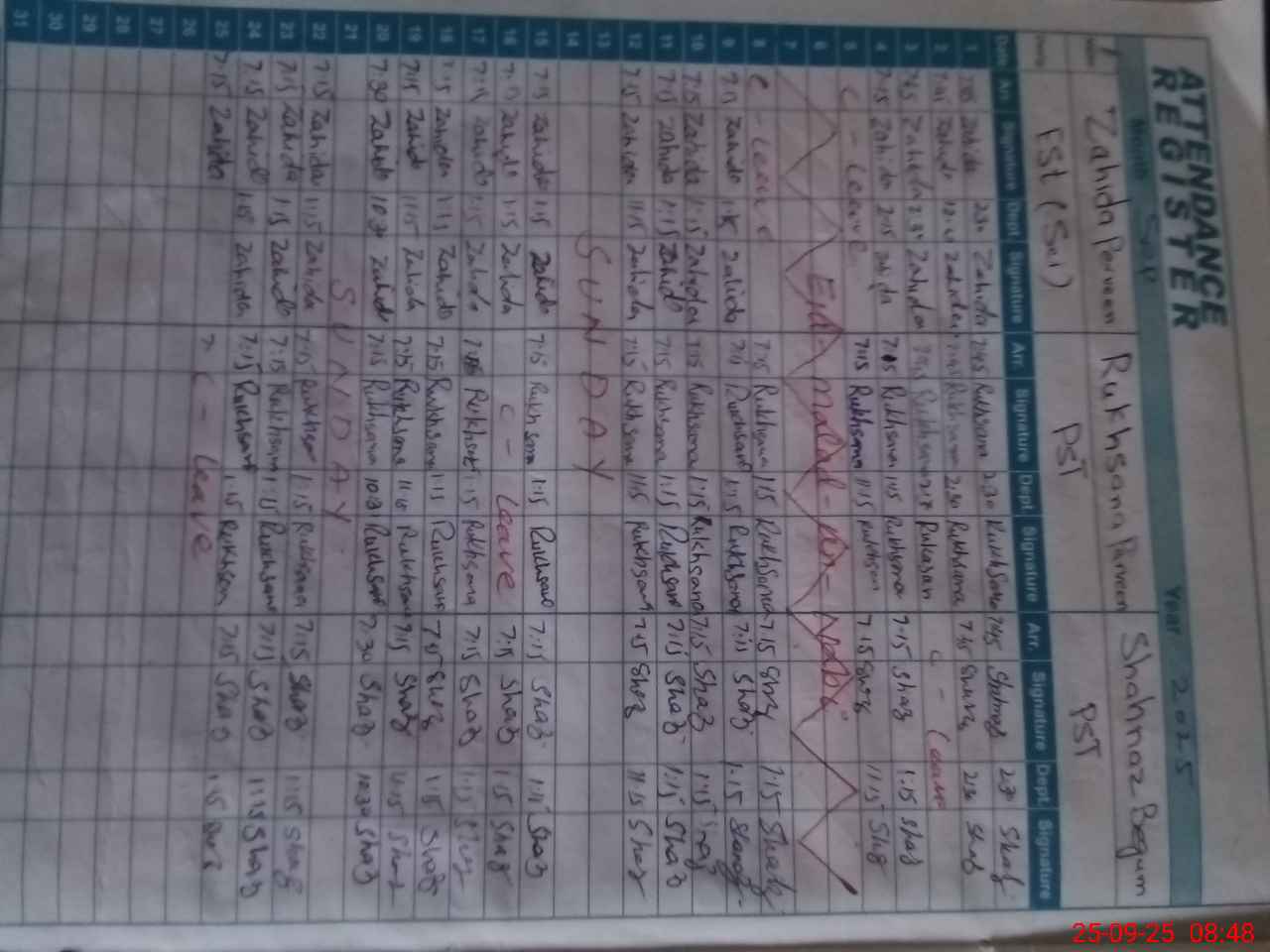 | 33**** | Sh**** Be**** | 1 | 2 | 0 | 0 | 0 | 0 | 0 | 0 | 0 | 2 | Absent (Un-Authorized) | |