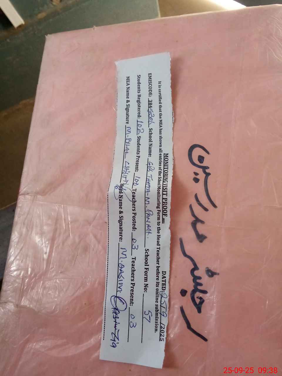 | Attendance Register | Head Teacher | MEA with School | Visit Proof |
