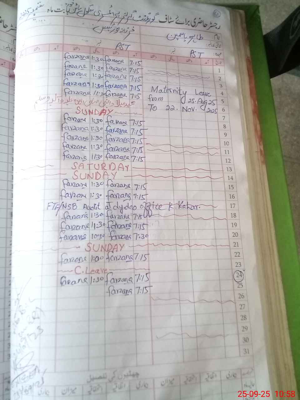 | 37**** | Ta**** Ya**** | PST | Regular | 0 | 0 | 0 | 0 | 0 | 0 | 0 | 0 | 0 | Maternity |