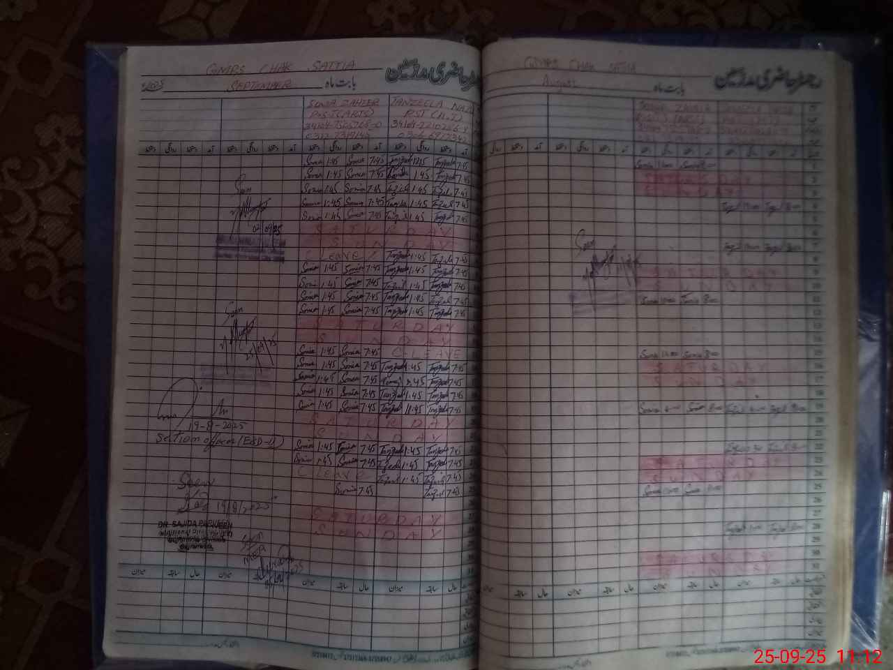 | CNIC | Full Name | Designation | R/C | Absence During Last Calender Month |