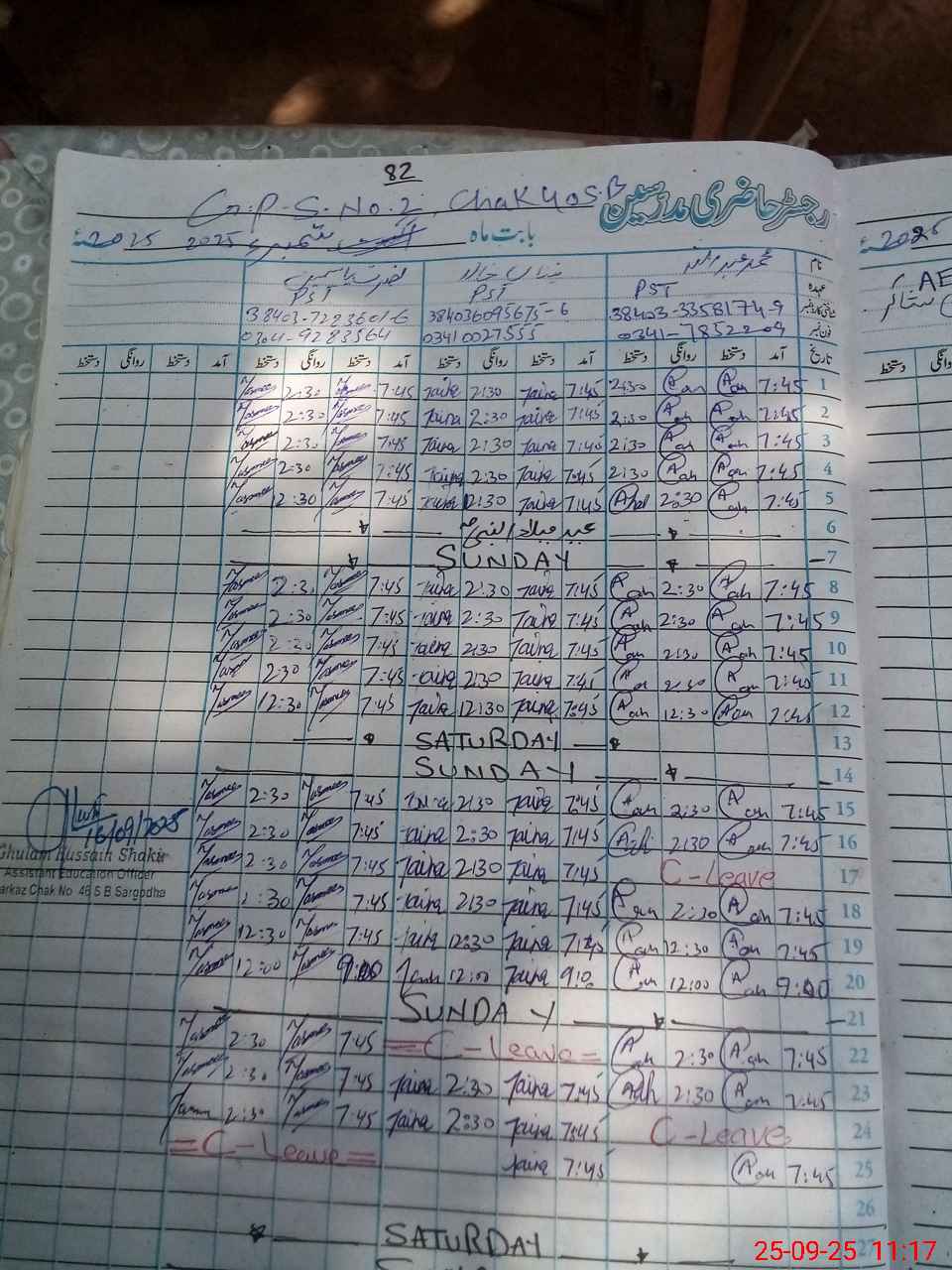| Name: MU**** AB**** Designation: (School Headmaster's/Headmistress's) PST(SC_MATH) Phone/Cell Number: 03**** |
