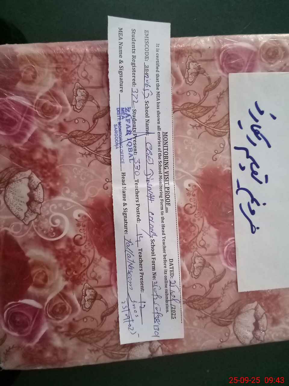 | Certified that this School was Inspected by the Undersigned MEA/DMO Today and the Information Stated Above is as Per Record. | |||||