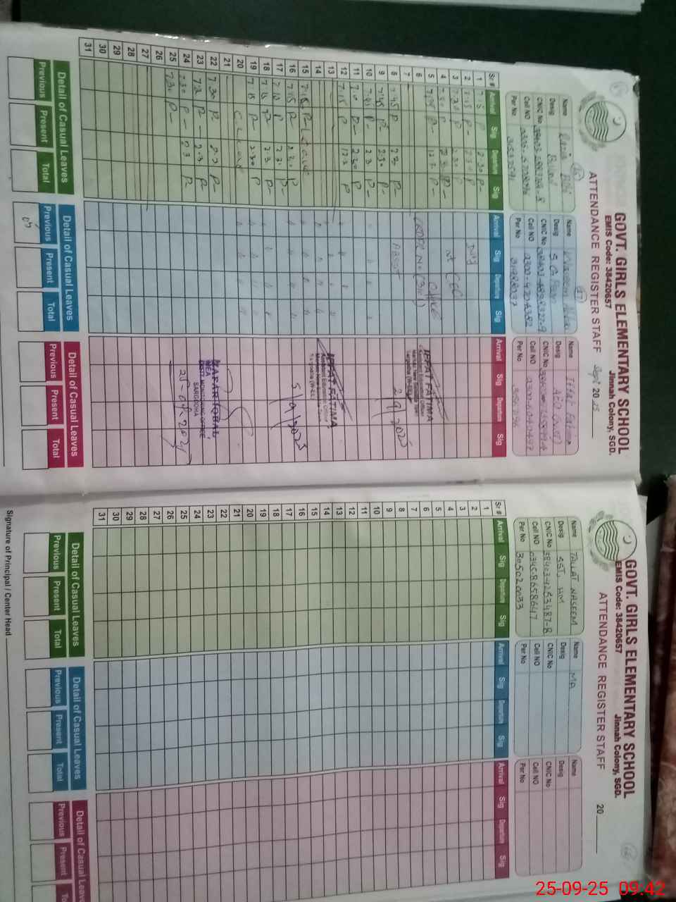 | CNIC | Full Name | Designation | R/C | Absence during last cal. month |