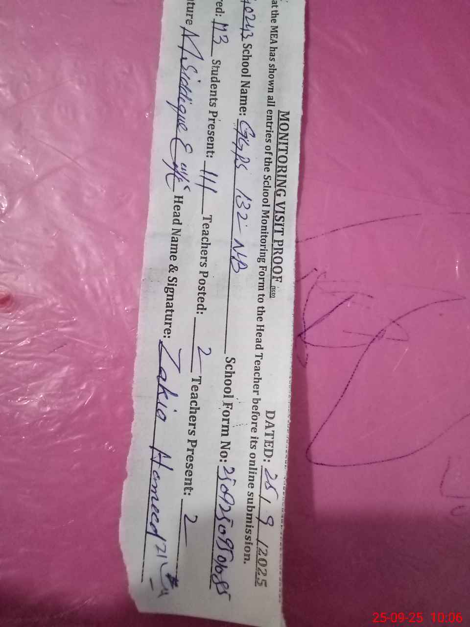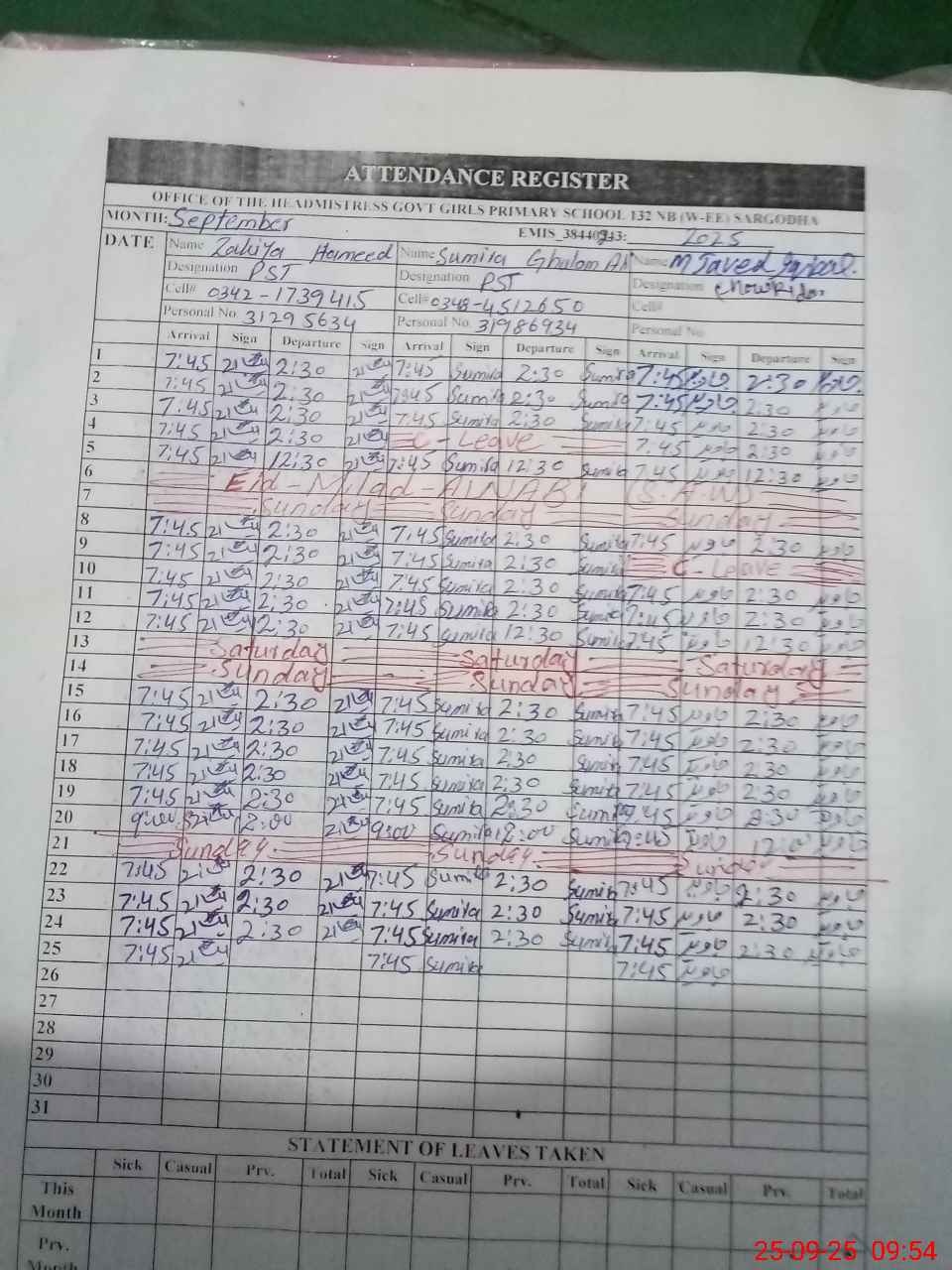 | Name: ZA**** HA**** Designation: (School Headmaster's/Headmistress's) PST Phone/Cell Number: 03**** |