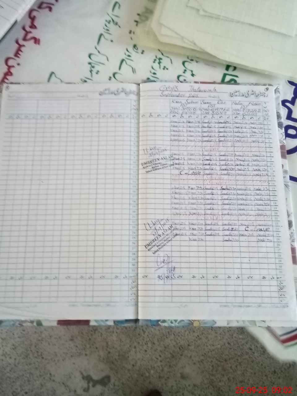 | CNIC | Full Name | Designation | R/C | Absence during last cal. month |