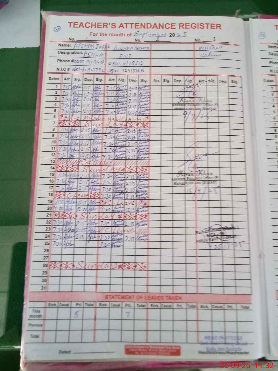 | Name: Af**** Za**** Designation: (School Headmaster's/Headmistress's) PST Phone/Cell Number: 03**** |