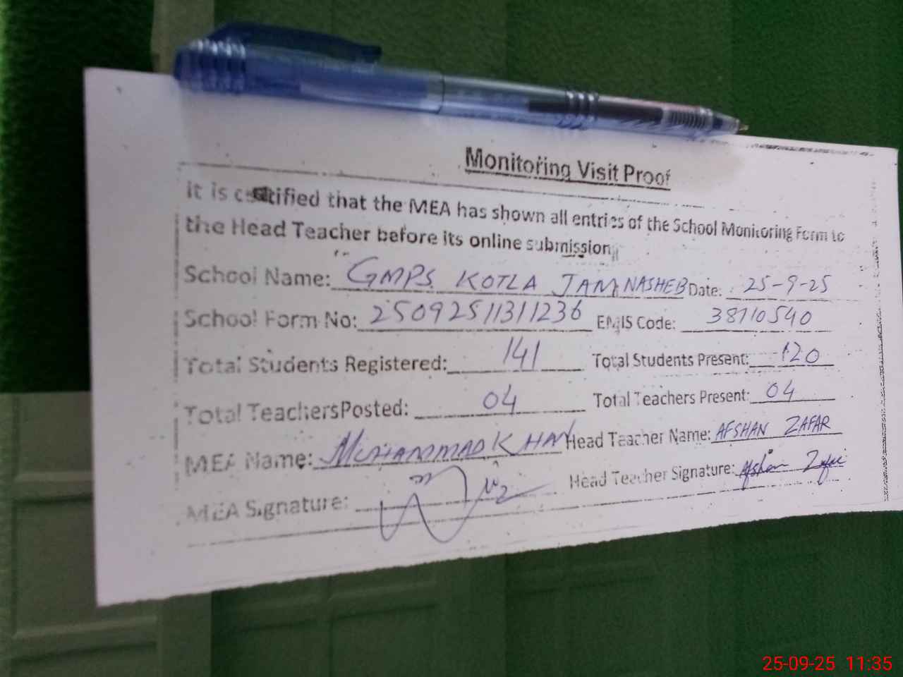 | EMIS Code: 38110540 | Name of School: GMPS KOTLA JAAM NASHEB | |||