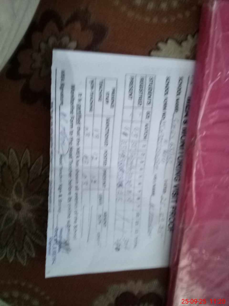 | Remarks (Use Separate Page if Required): No AEO VISIT IN LAST 4 MONTH ACCORDING TO TAB RENDOM CHECK CLASS 8TH promoted to next school | |||||