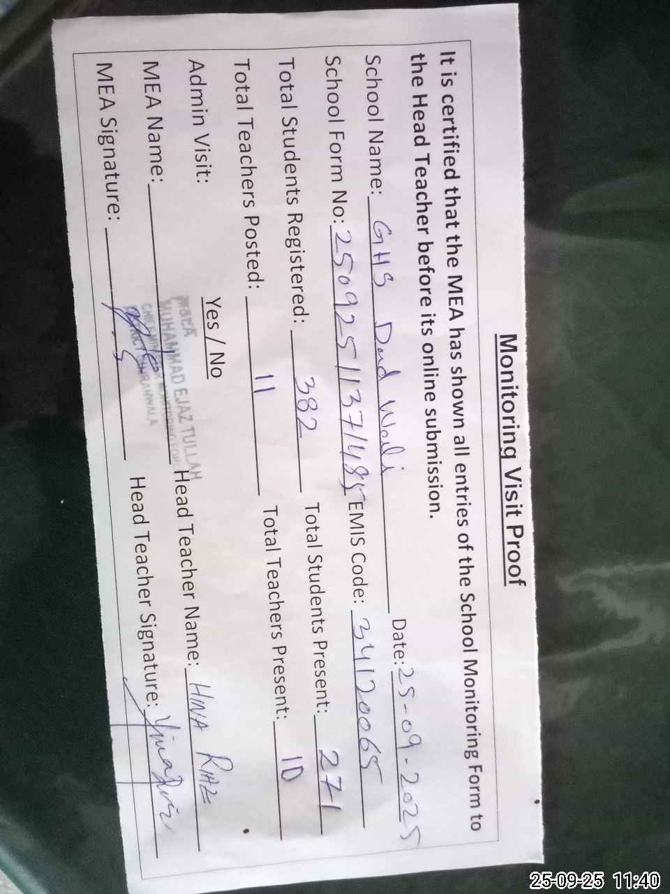 | EMIS Code: 34120065 | Name of School: GGHS DAD WALI | |||