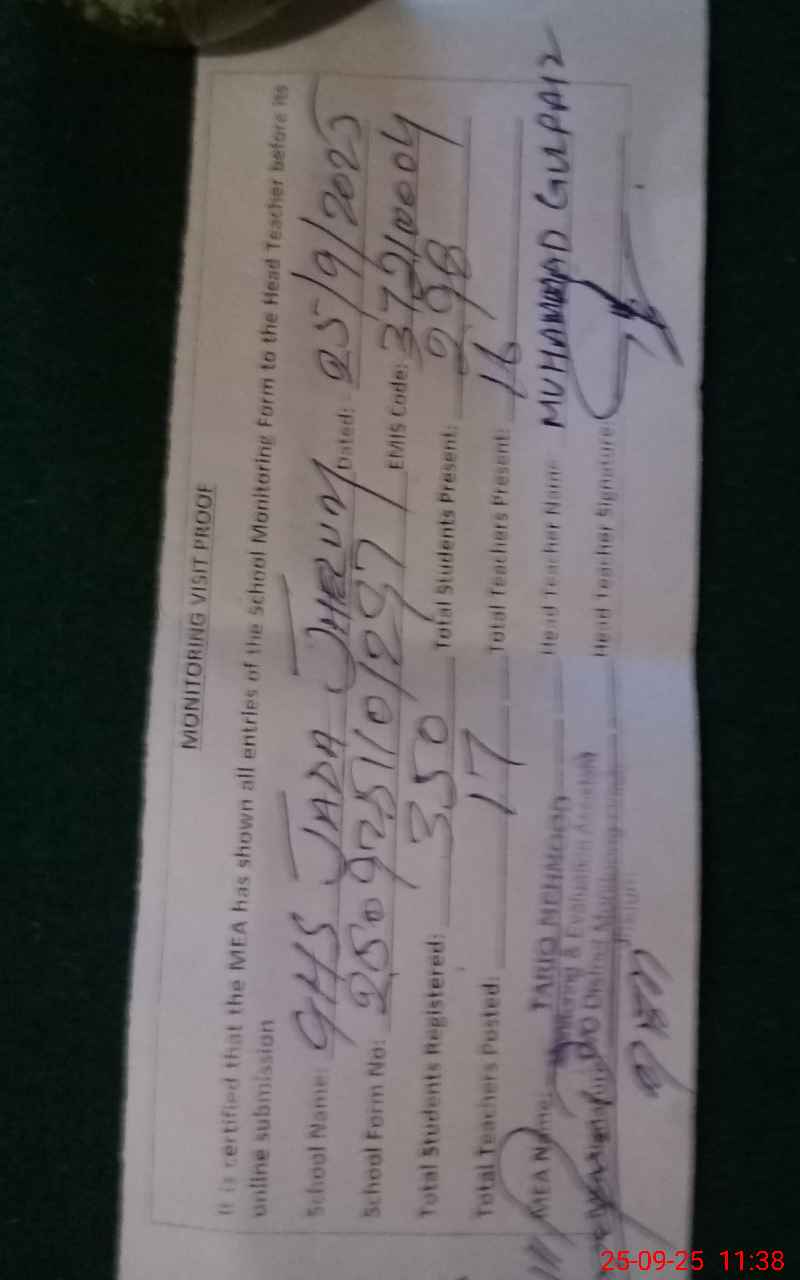 | EMIS Code: 37210004 | Name of School: GHS JHELUM | |||