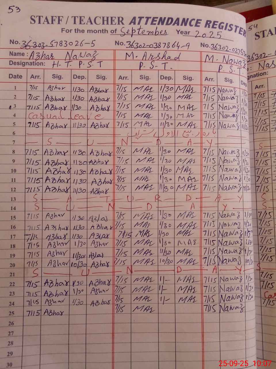 | Name: MAZ**** NA**** Designation: (School Headmaster's/Headmistress's) PST Phone/Cell Number: 03**** |
