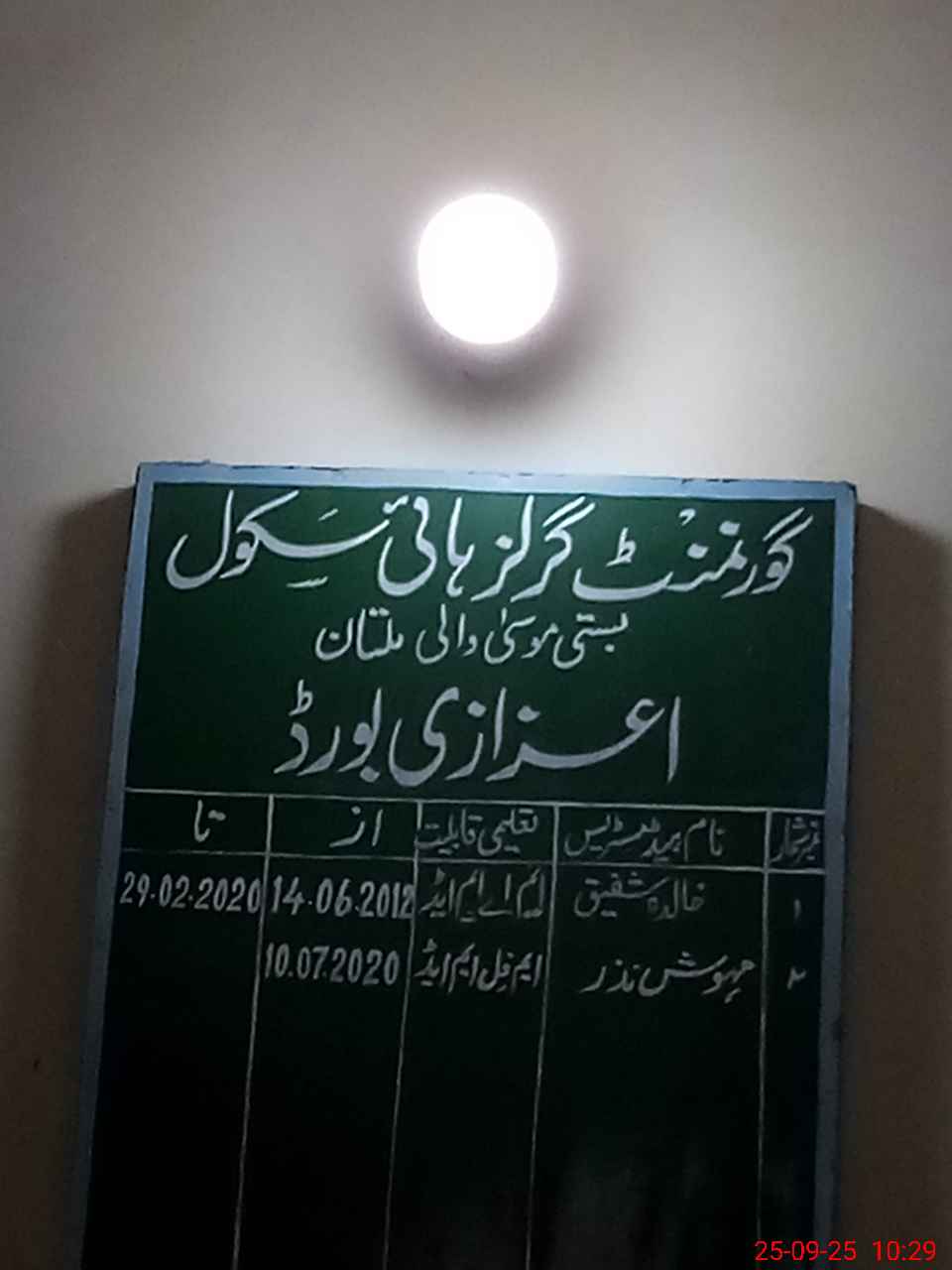 | EMIS Code: 36110081 | Name of School: GGHS BASTI MUSA WALI MULTAN | |||