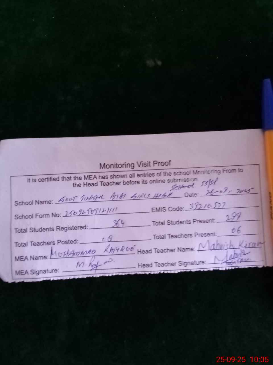 | Certified that this School was Inspected by the Undersigned MEA/DMO Today and the Information Stated Above is as Per Record. | |||||