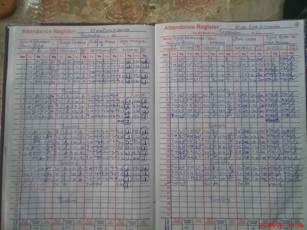 | CNIC | Full Name | Designation | R/C | Absence During Last Calender Month |