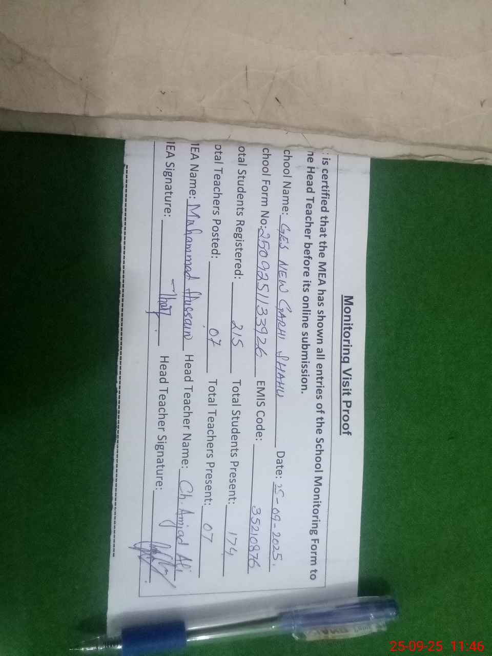 | EMIS Code: 35210876 | Name of School: GES NEW GARHI SHAHU (EX-MCL) | |||